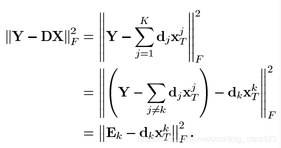 对于字典D的更新,我们依次更新字典D中的第k列dk和X中与其对应的第k行